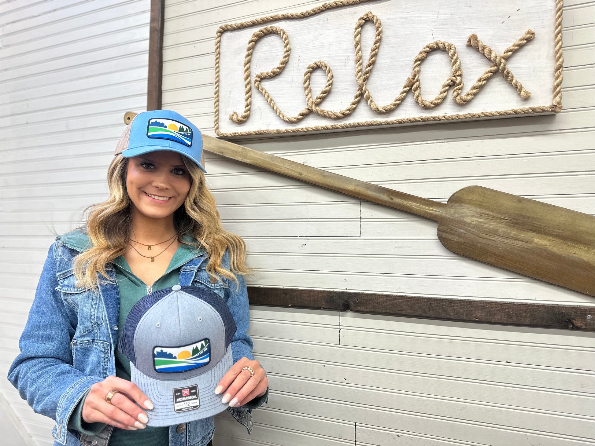 Richardson 112 mesh back, one size fits all. Custom patch logo. Clarksville, VA embroidered on the back.